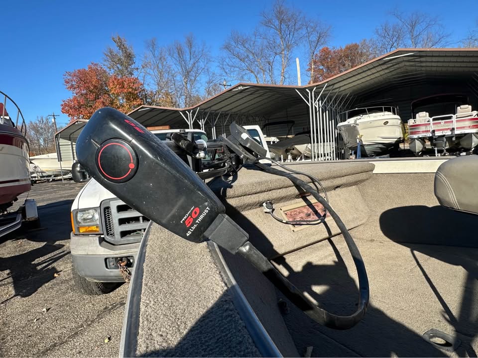 Great set up for a fishing boat. 60hp Mercury outboard. In 2024 the motor was tuned up, water pump impeller replaced, gear lube changed, new bilge pump, replaced the water pressure gauge and replaced the starting battery. The boat has 5 seats and a walk through windshield. All vinyl is great condition. Aerated bait well. Plenty of storage for rods and gear. Trolling motor with footpedal. Stereo. New cover. This boat had been well cared for. Aluminum hull.