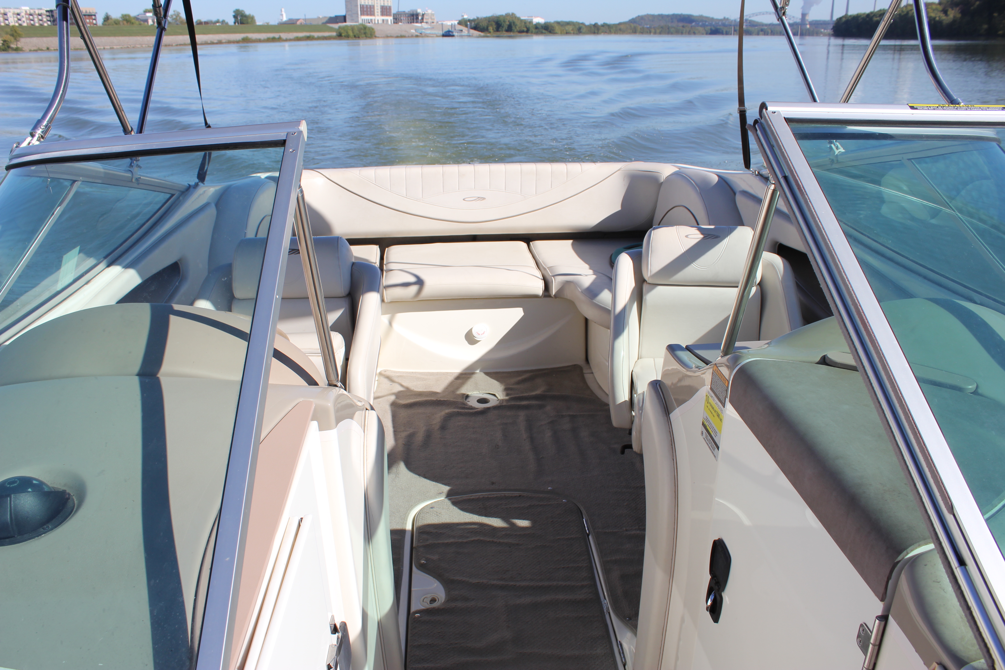 A one ownere well kept 23 ft bowrider in great condition with a dependable Mercruiser 5.7L motor and an Alpha Gen 2 Outdrive. Great deep boat with plenty of power to pull tubes, water skiers and wake boarders. It provides a nice stable ride and handles well in rough water. It’s always been a freshwater boat. This boat has been professionally maintained over its lifetime. It’s either been shrinkwrapped and/or stored beneath a carport every winter. All the vinyl is in great condition. It has a nice stereo and a bathroom, cockpit and bow covers and a Bimini top. The boat sits on an Eagle tandem axle trailer which is included in the sale.