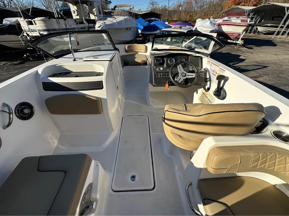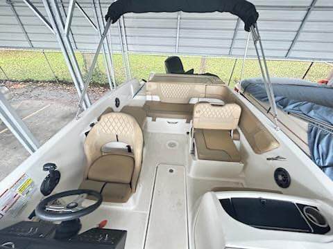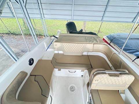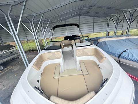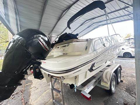 Nice 22 1/2 foot bowrider. Powered by a Mercury 150 hp 4 Stroke motor. The outboard motor is not only quiet but fuel efficient. These motors are solid performers that should run for 3000 to 4000 hours with recommended maintenance. Nice roomy boat with great seating layout and tons of storage. There’s a private bathroom with a porta potty, a passenger seat that flips forward and backward, generous bow area and equipped with a nice stereo. New bow and cockpit covers plus a Bimini top. Comes with a brand new Venture aluminum tandem axle trailer.
