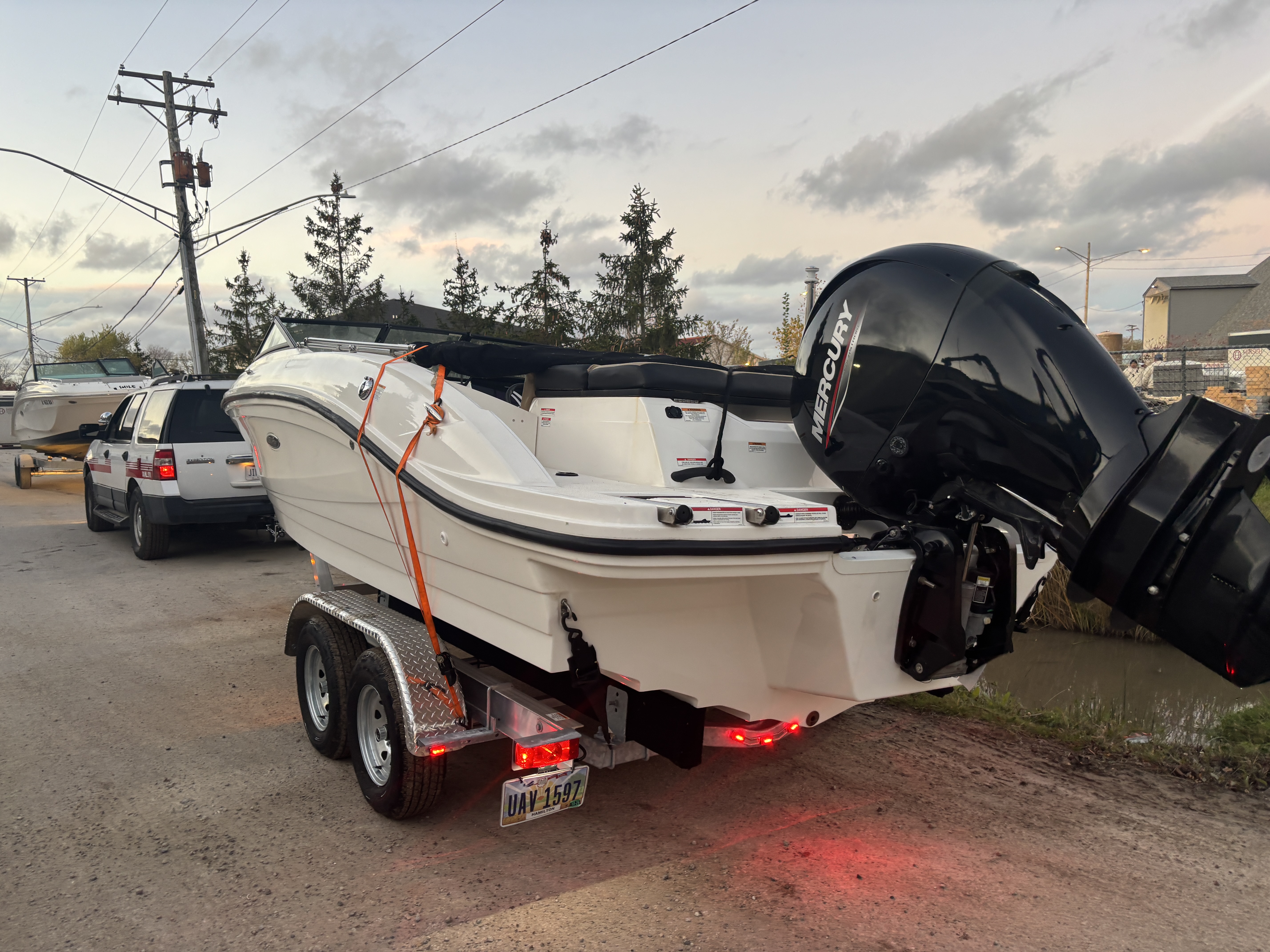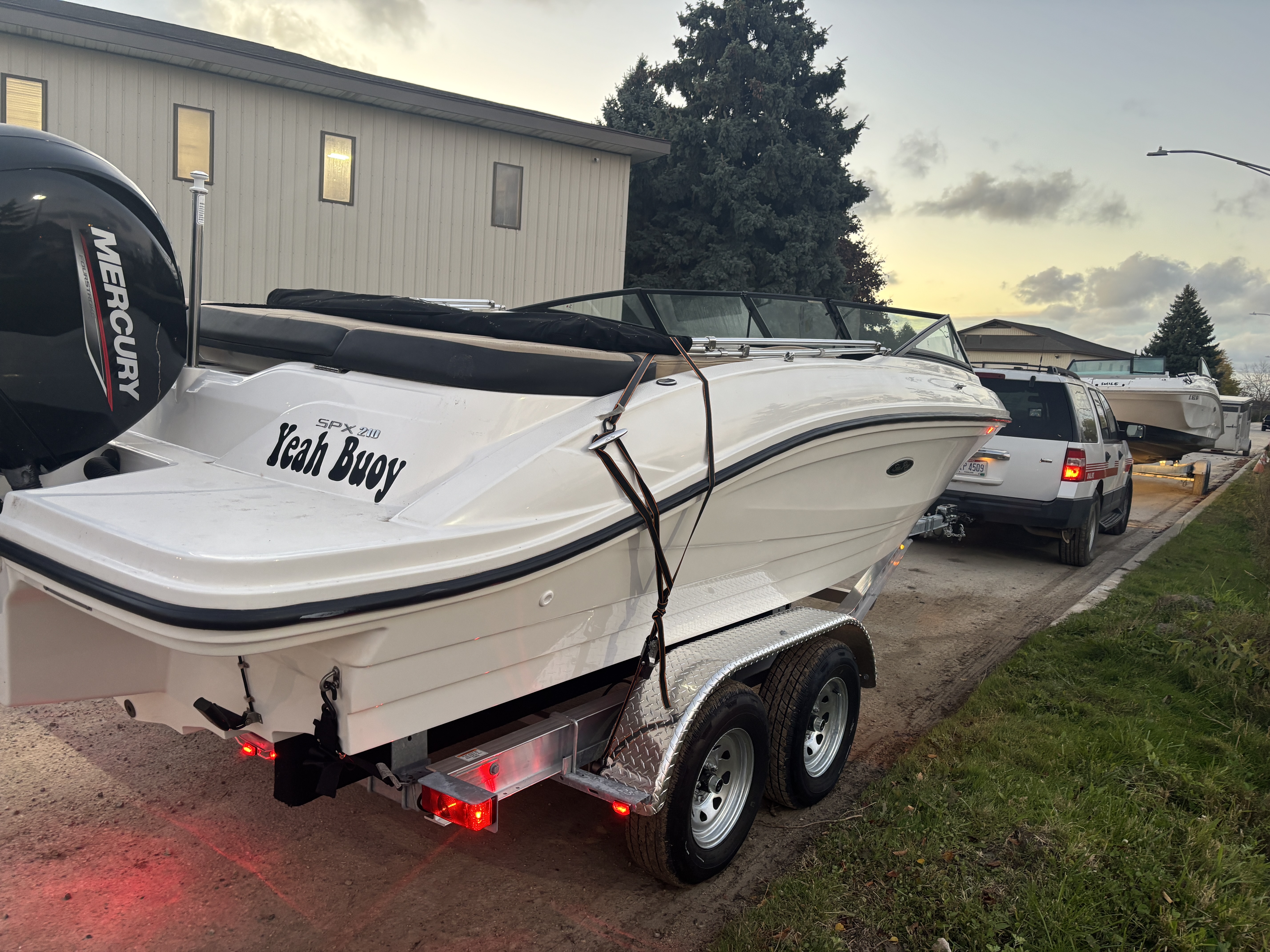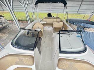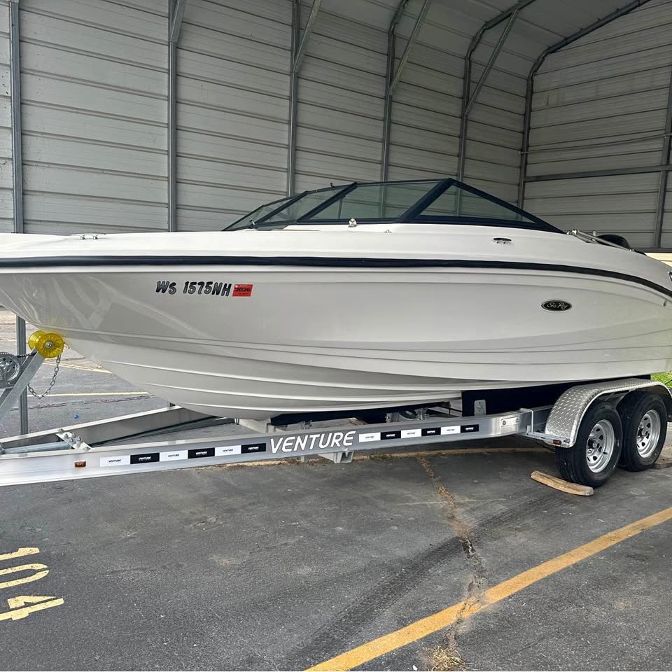 You could be enjoying the water next spring in your 21 ft Sea Ray. The Mercury 150hp four stroke outboard provides quiet fuel efficient power for your water sports activities or cruising to your favorite waterfront restaurant. You’ll love the spacious interior with its great seating options. The cockpit features a U shaped seating arrangement with a 3 position seat back on the passenger side that can be switched from a forward facing seat to a rear facing lounge or flip it all the way down. There’s a bathroom compartment and tons of storage. There’s 2 batteries with a switch, Bimini top, new bow and cockpit covers, nice stereo, plenty of cup holders and a built in cooler. The beam forward design allows for comfortable seating in the bow area. This boat was only used in freshwater and always well maintained. Includes a 2025 Venture tandem axle aluminum trailer with disk brakes on both axles. Why spend twice the money on a new boat?