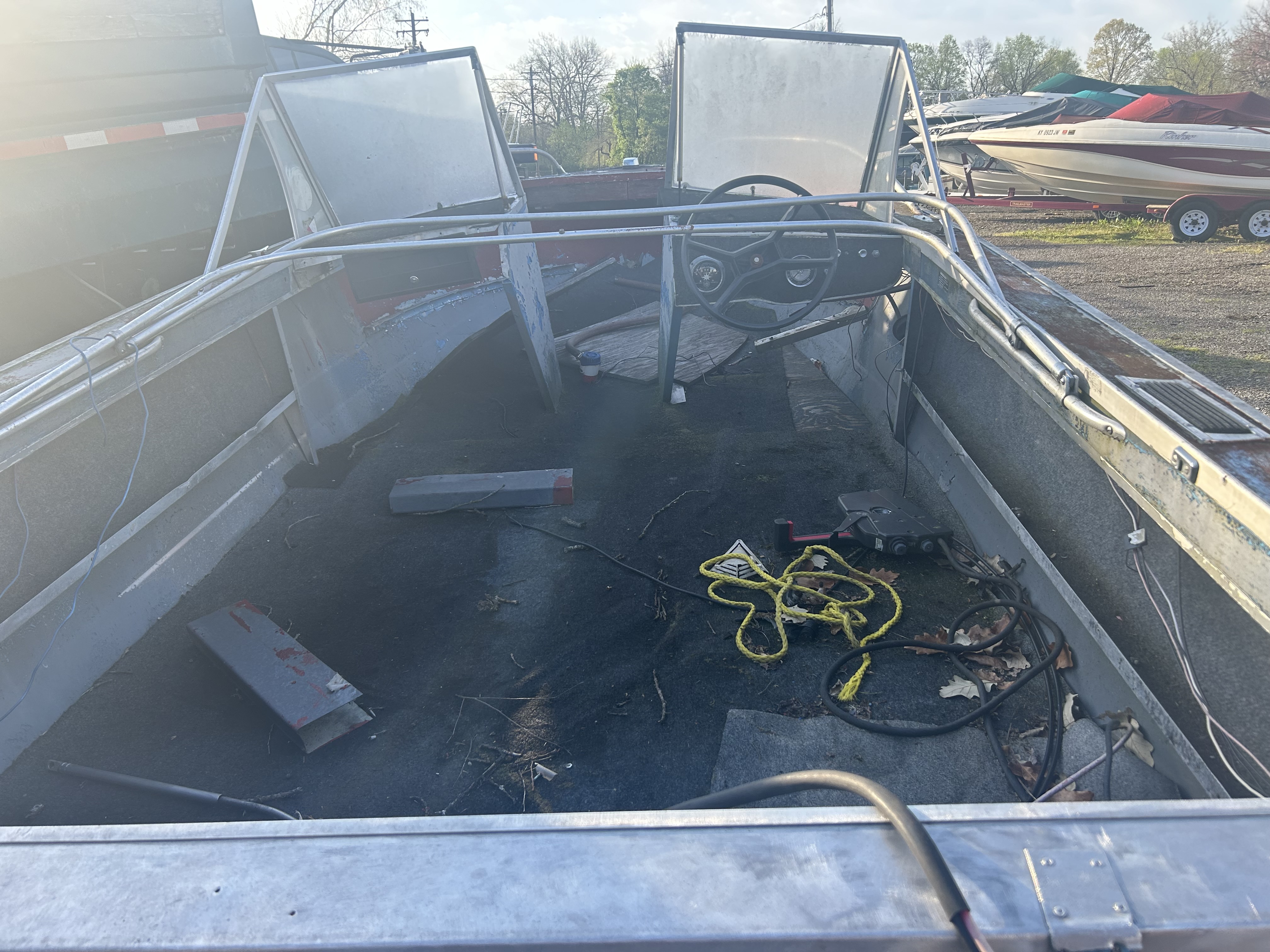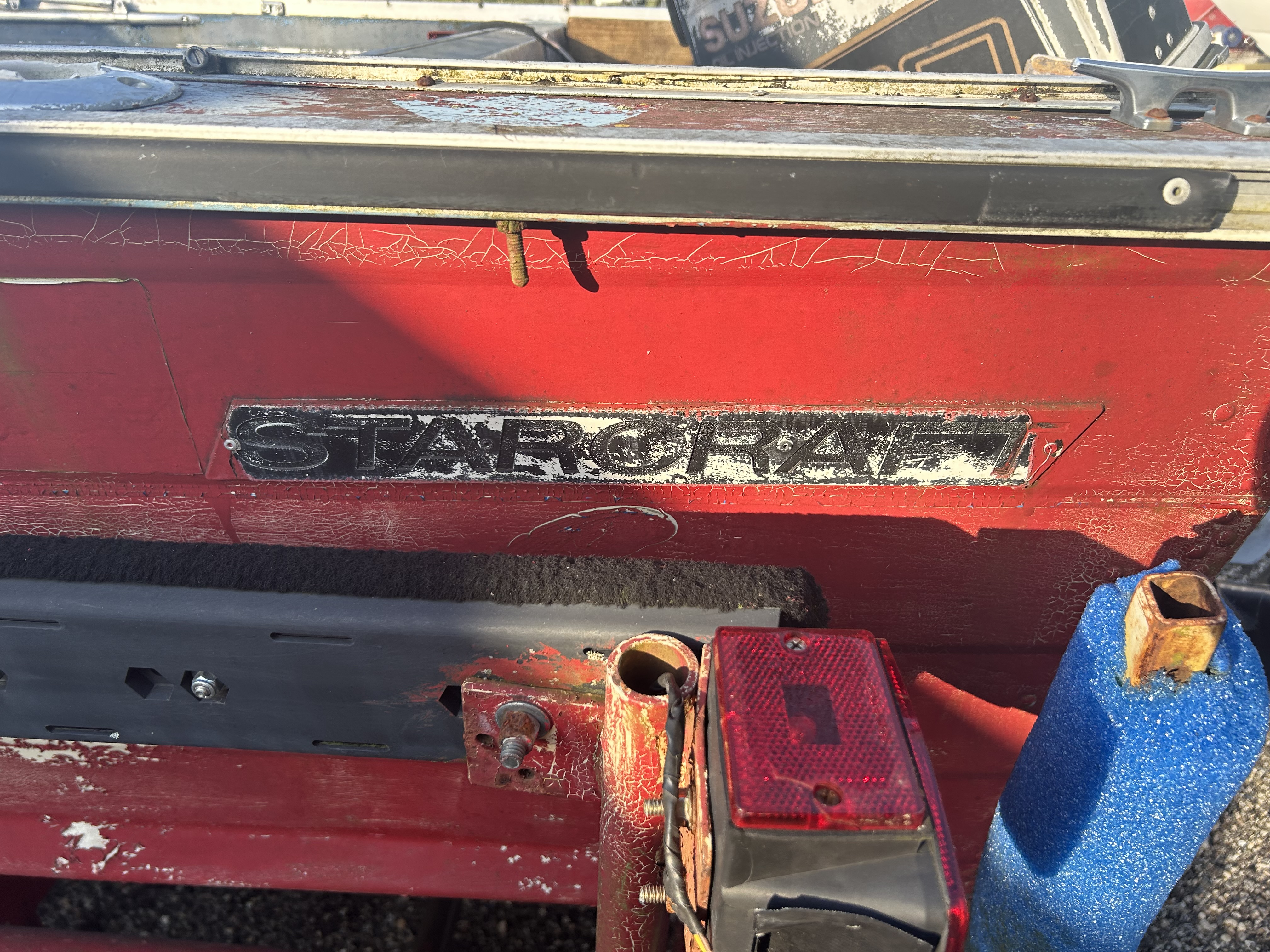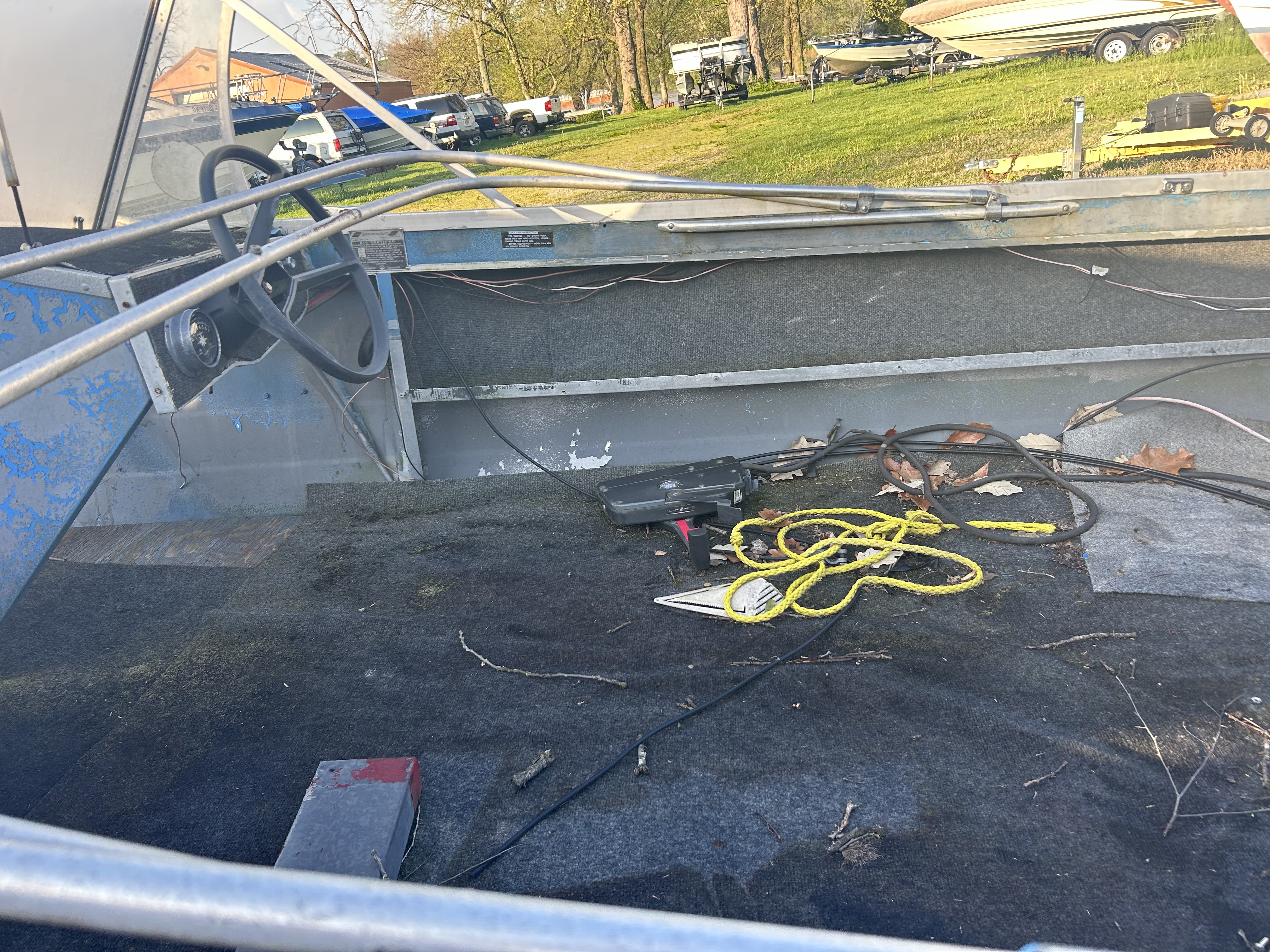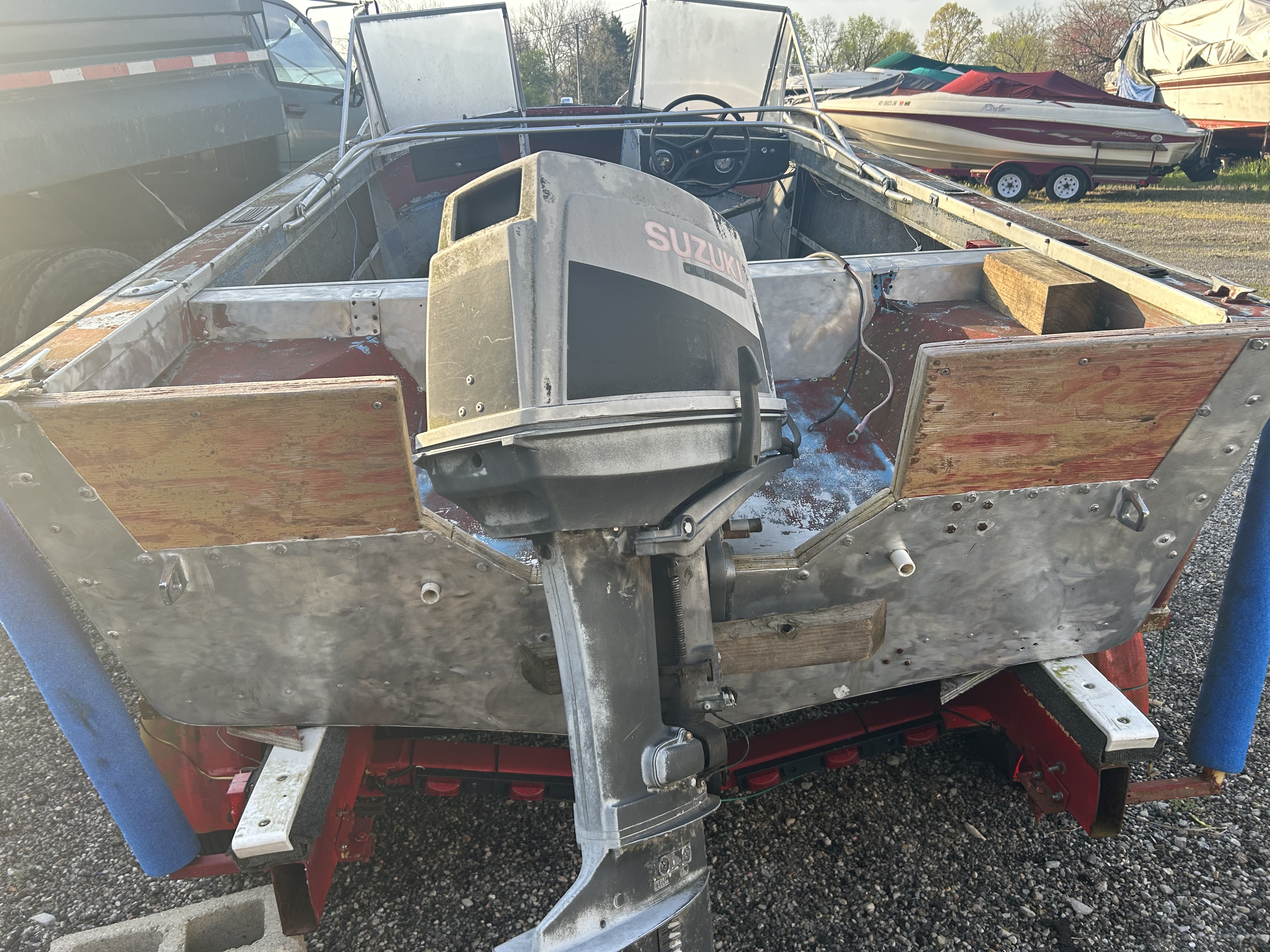 A lightweight aluminum hull built by Starcraft, a walk through windshield and plenty of room to fish or just goof off. The boat has had some work done to it, however, the person replacing the transom lost interest in doing it even though they were close to completing the job.