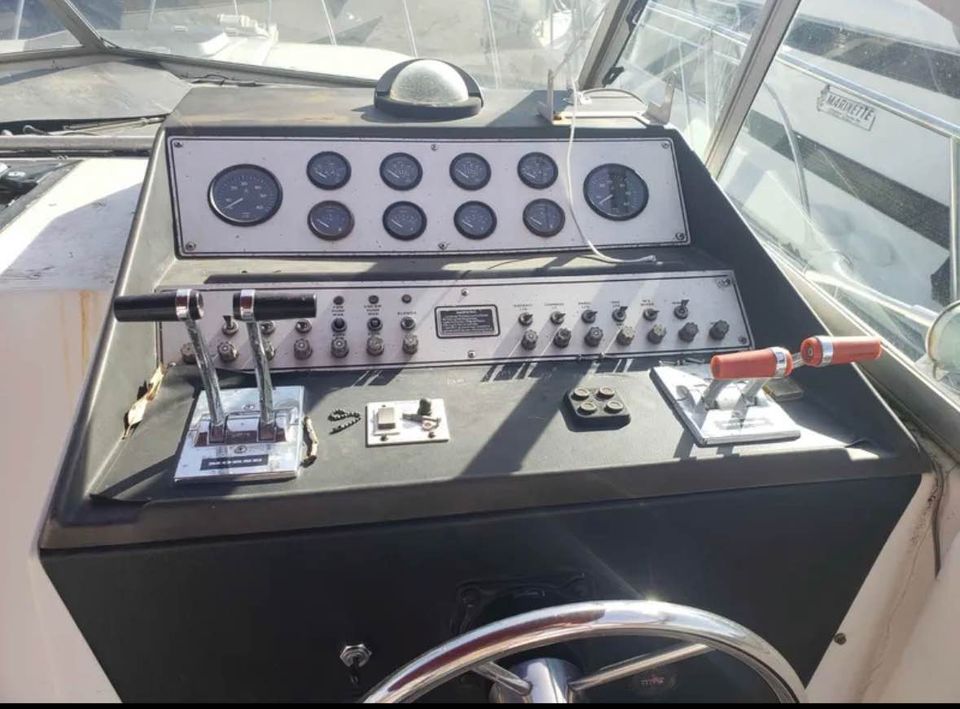 This Classc Chris Craft boat has has a ton of potential and here’s your chance to own a 33 ft Cabin cruiser. This large express cruiser is powered by a pair of 7.4L inboards and a generator. This boat has been in storage for sometime and needs attention. It was winterized before it was stored. Both motors turn over. Unsure about generator but assume it should work. 33 ft length and 12 ft 1 in Beam. 11,560 lbs. The mattress in the V Berth needs a new cover. The boat is presently stored on drums and blocks and has been shrinkwrapped. It’s sold “as is”. Storage is available. There is no trailer. It can be moved by a professional boat mover or launched from the marina once the boat is up and running. Will consider reasonable (not lowball) offers. We have the original sales brochure for the boat as well.