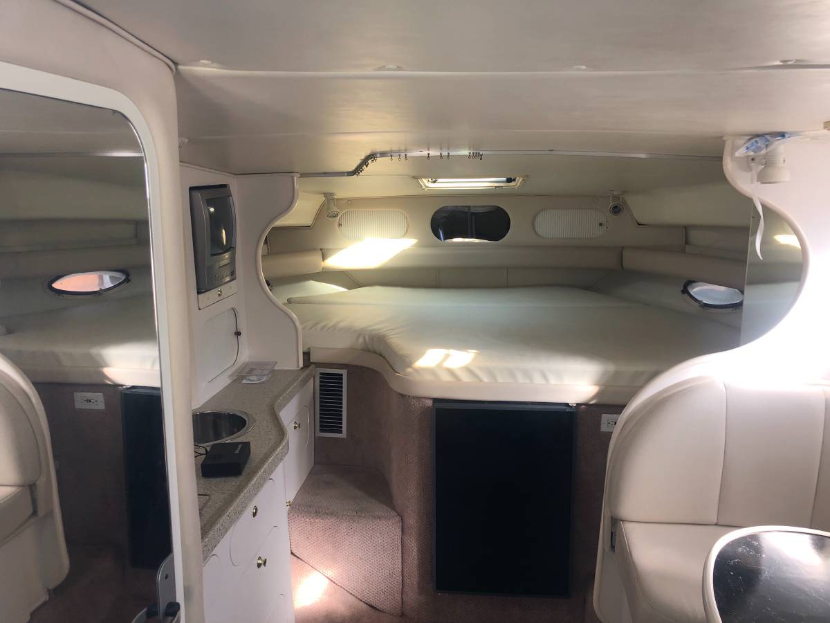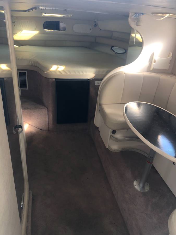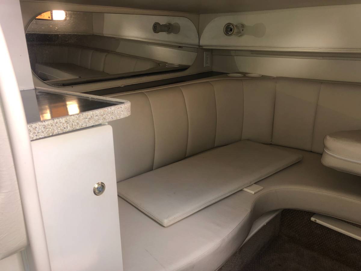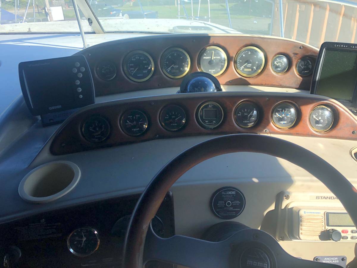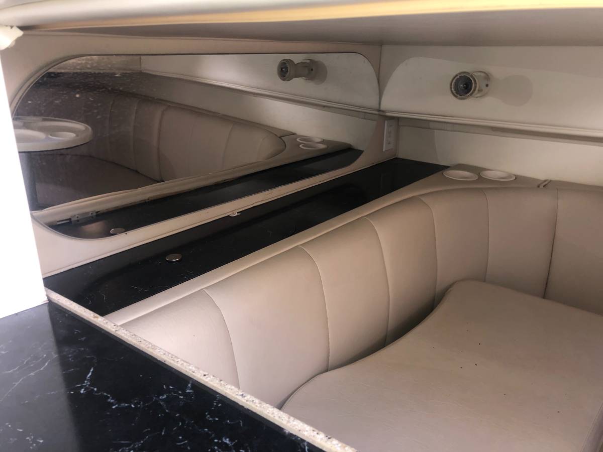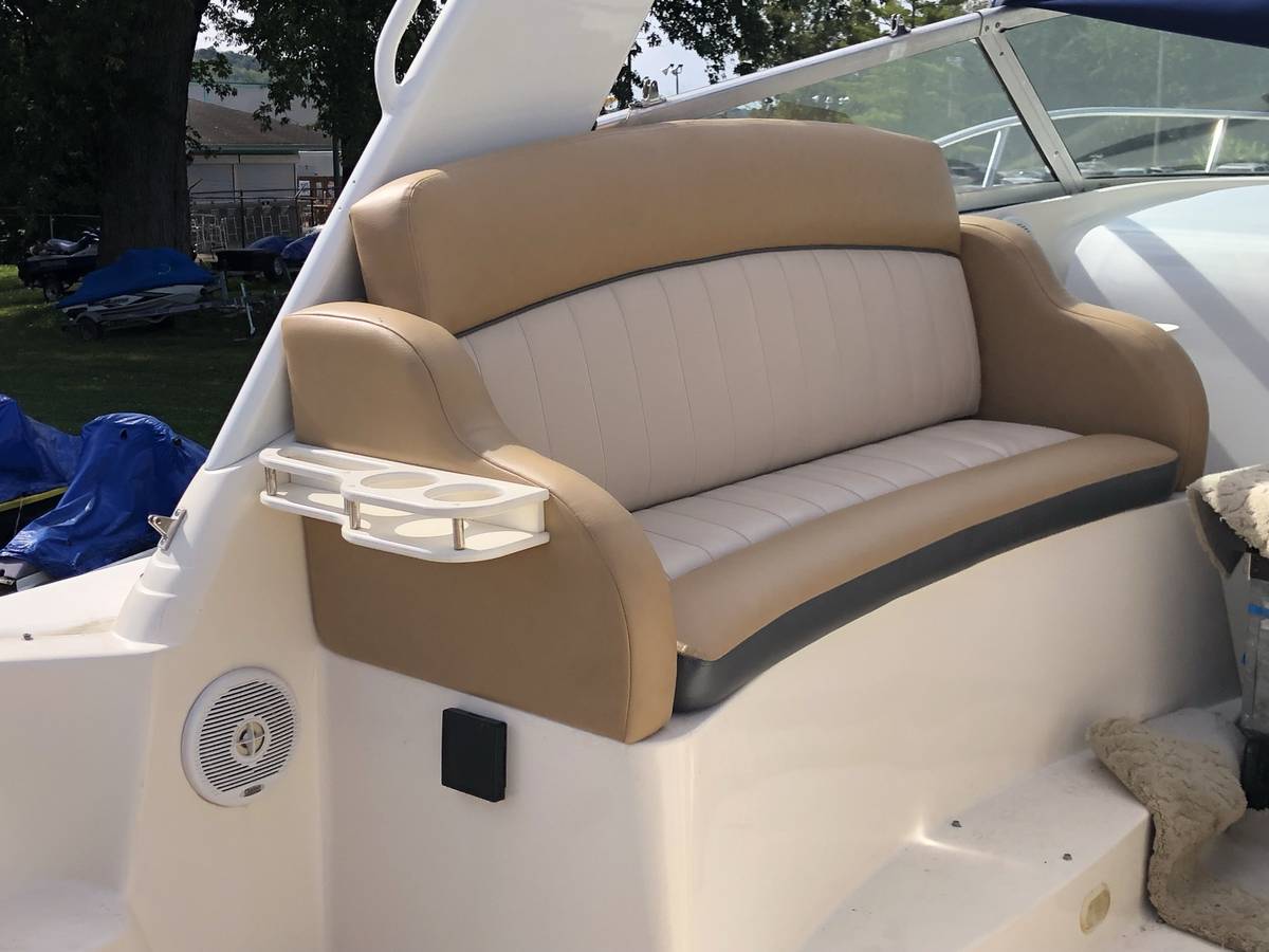 33 foot express cruiser. Twin Mercruiser 5.7L EFI motors and Bravo 3 Outdrives. This has always been a freshwater boat. It was initially kept on a hydro hoist lift on Lake. Cumberland and then moved up to the Ohio River. Options include a Kohler generator, anchor windlass, marine a/c. Bathroom has separate shower stall. Refrigerator in the cockpit with sink. Transom shower. Large swim platform. Galley alcohol/electric cooktop, sink, refrigerator, built in coffee maker. Solid surface counter. Semicircle couch with solid surface table. Boat has a v berth and aft cabin with table that coverts to a bed. Cockpit upholstery is new, radar arch was repainted, cockpit and anchor lights replaced, motors and generator tuned up and impellers replaced. Bimini tops, camper canvas with new vinyl windows, newer custom cockpit cover. Garmin GPS Map180, Garmin 160 (blue)Fish finder, and vhf radio. Additional Mercruiser anodes. This boat is nearly identical to the 340 and 342 Fiesta Vees.