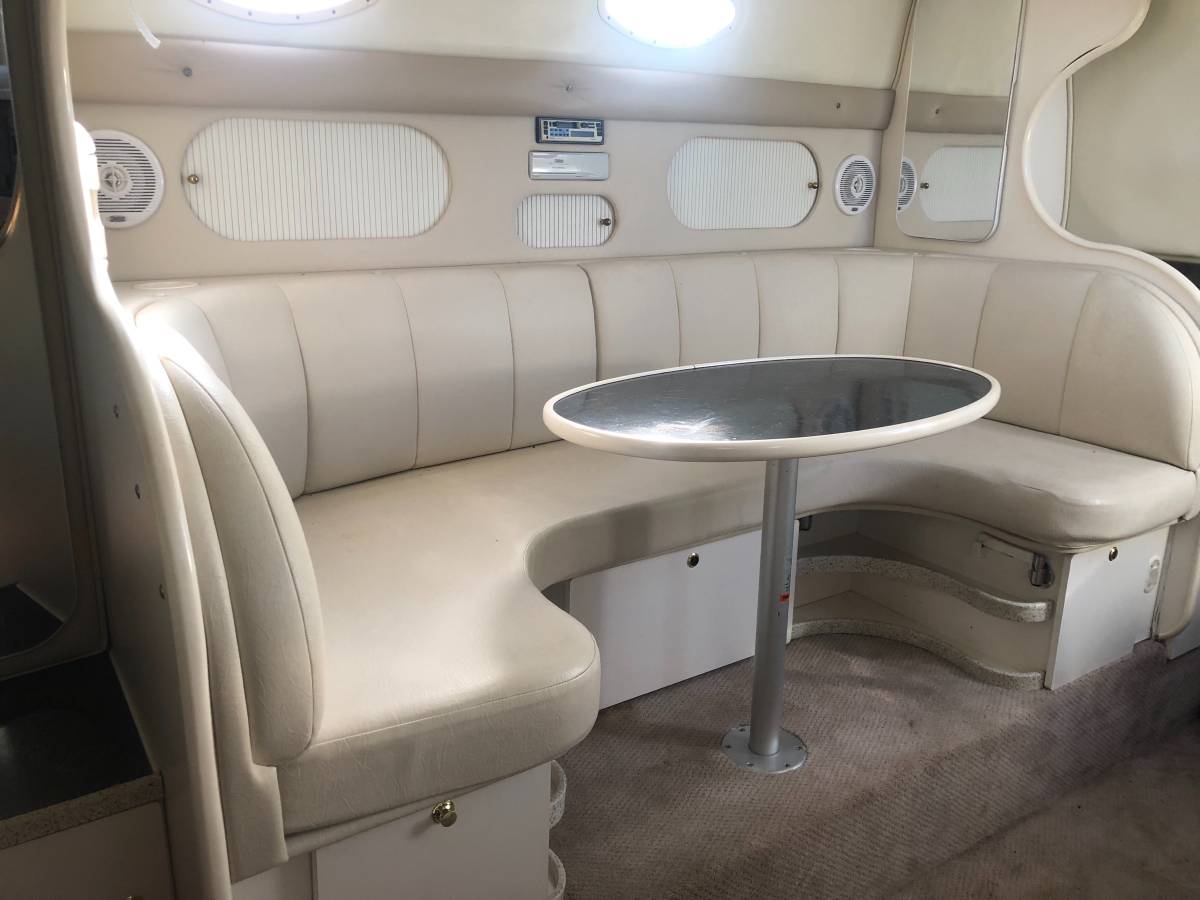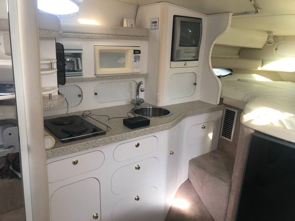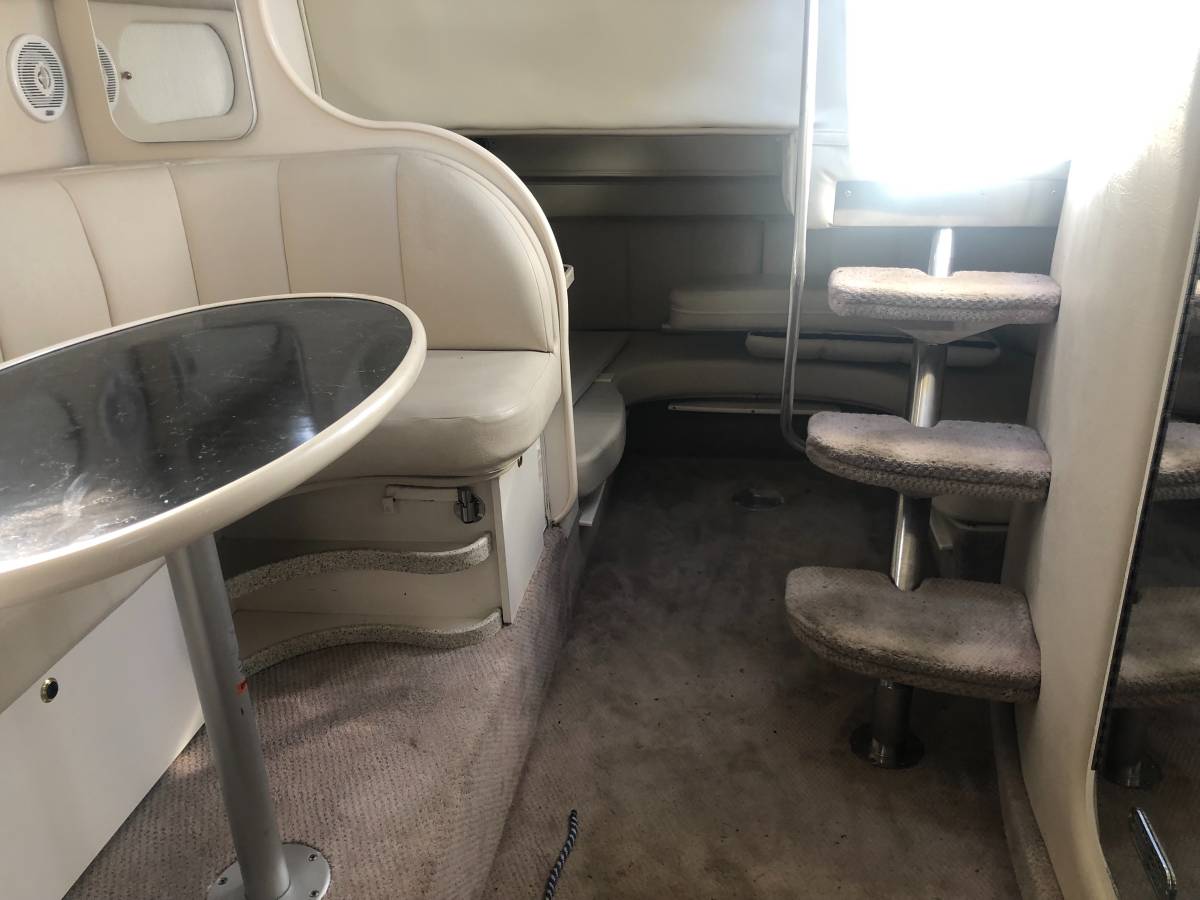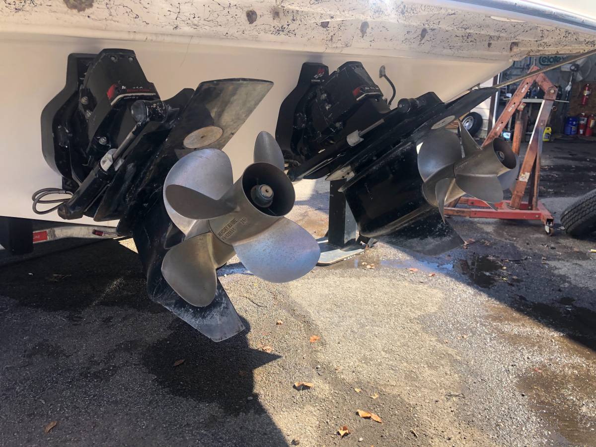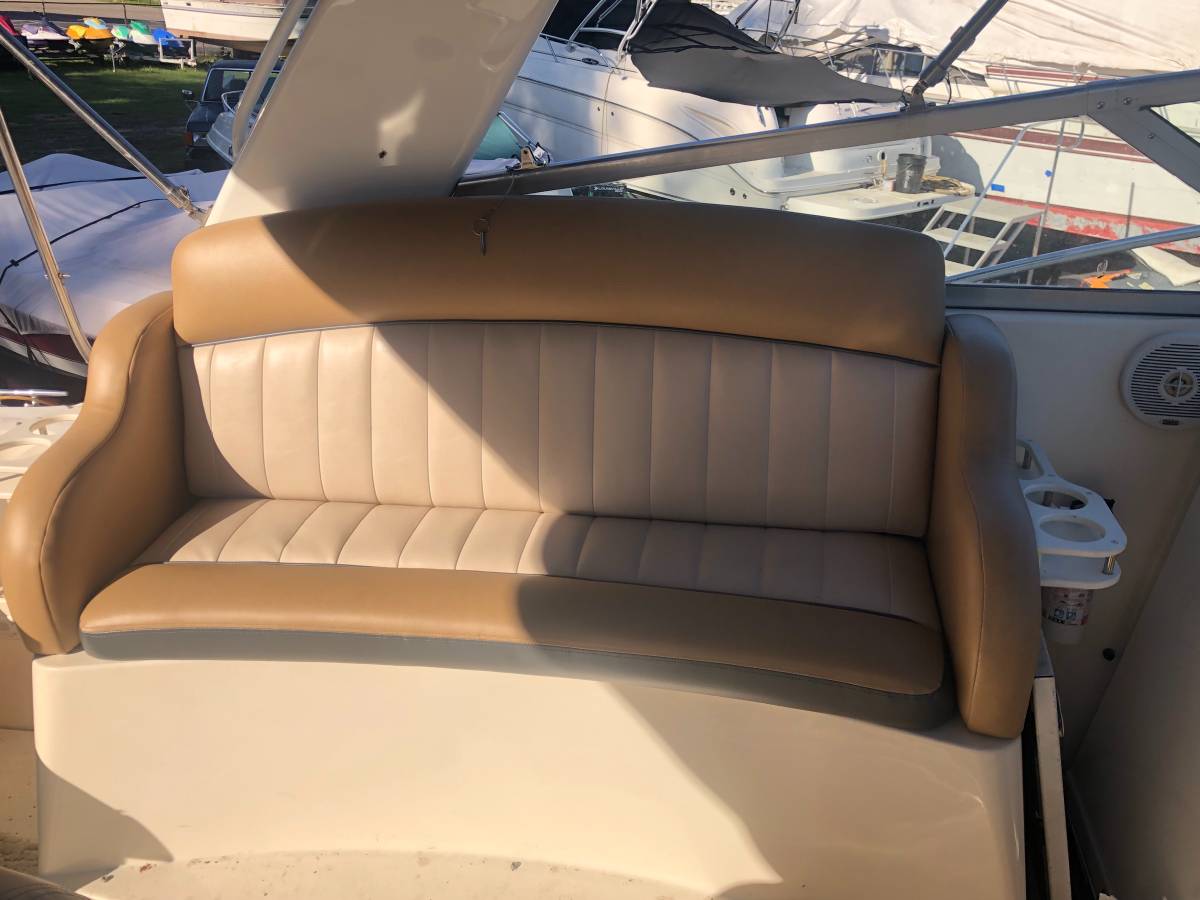 33 foot express cruiser. Twin Mercruiser 5.7L EFI motors and Bravo 3 Outdrives. This has always been a freshwater boat. It was initially kept on a hydro hoist lift on Lake. Cumberland and then moved up to the Ohio River. Options include a Kohler generator, anchor windlass, marine a/c. Bathroom has separate shower stall. Refrigerator in the cockpit with sink. Transom shower. Large swim platform. Galley alcohol/electric cooktop, sink, refrigerator, built in coffee maker. Solid surface counter. Semicircle couch with solid surface table. Boat has a v berth and aft cabin with table that coverts to a bed. Cockpit upholstery is new, radar arch was repainted, cockpit and anchor lights replaced, motors and generator tuned up and impellers replaced. Bimini tops, camper canvas with new vinyl windows, newer custom cockpit cover. Garmin GPS Map180, Garmin 160 (blue)Fish finder, and vhf radio. Additional Mercruiser anodes. This boat is nearly identical to the 340 and 342 Fiesta Vees.
