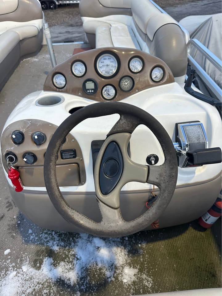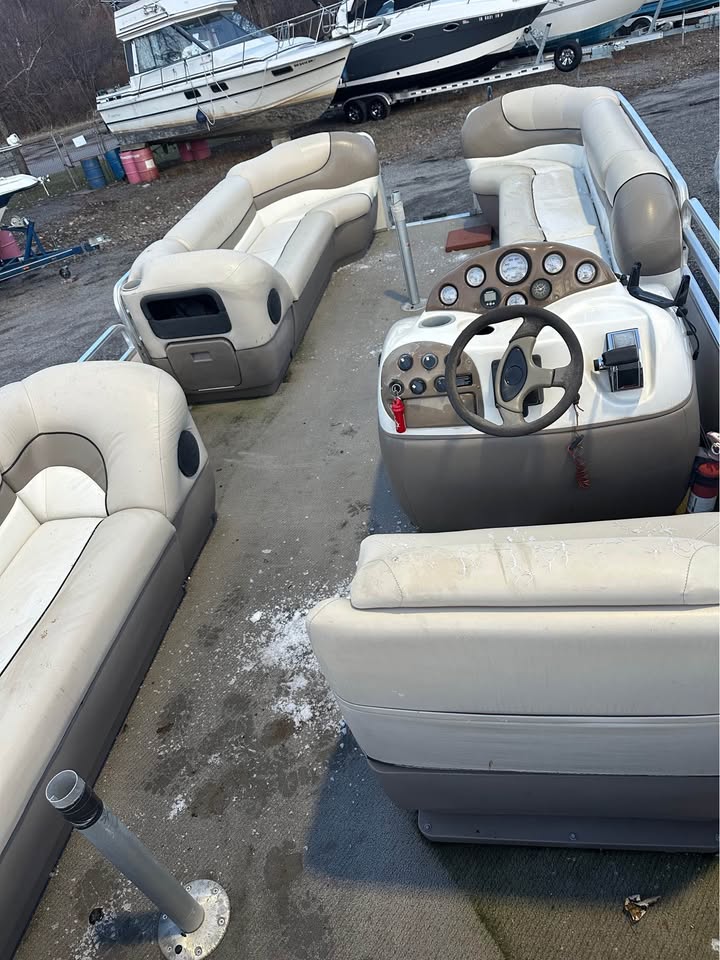 Nice 22 foot pontoon with a Mercruiser 3.0L 135hp stern drive. Includes a Bimini top and full mooring cover. The upholstery is better than average for a boat of its age. The boat runs well and seats as many as 14 in its comfortable layout. Trailer is included. The seller is not interested in trades. Storage is paid through the end of April.