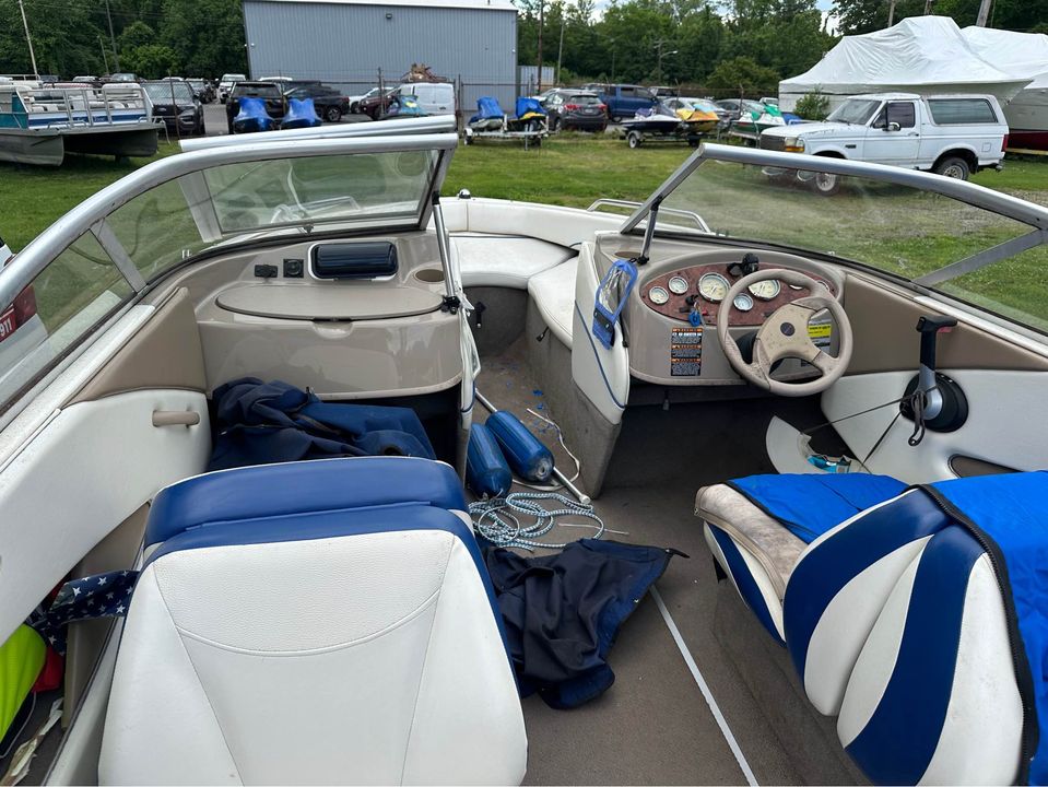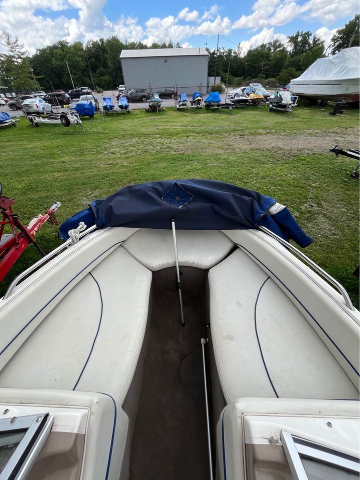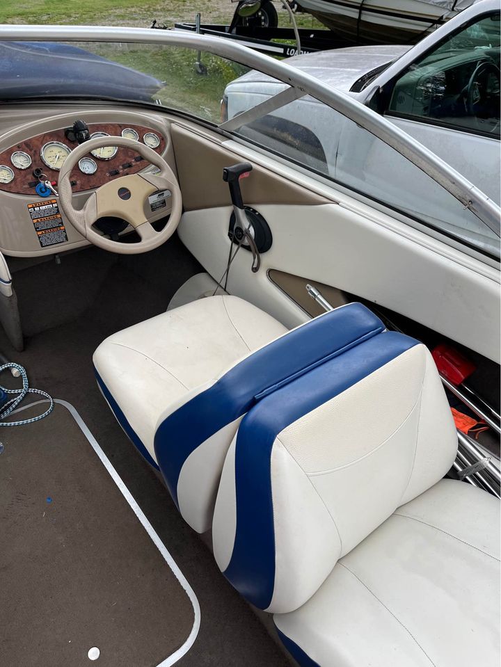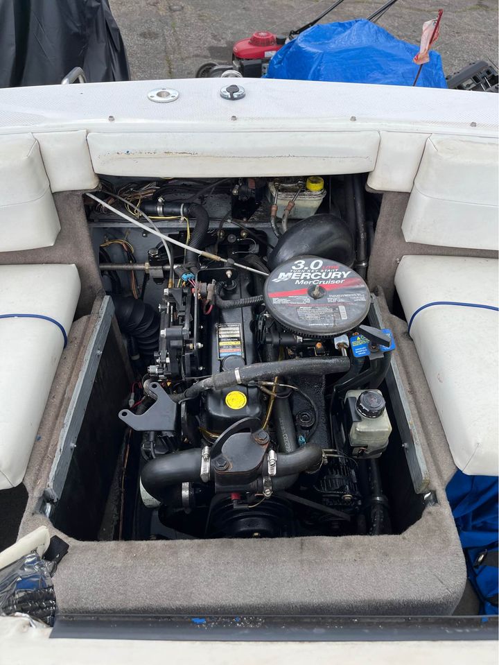 Nice 19 1/2 ft bowrider with Mercruiser 135 hp 3.0L sterndrive on a galvanized single axle trailer. Local freshwater boat. Interior in great condition. Bimini top and bow and cockpit covers. Only issue is a small area of dock rash and missing letters from the Bayliner logo on the one side. The owners have a newborn with no time to use the boat. Their loss is your gain.