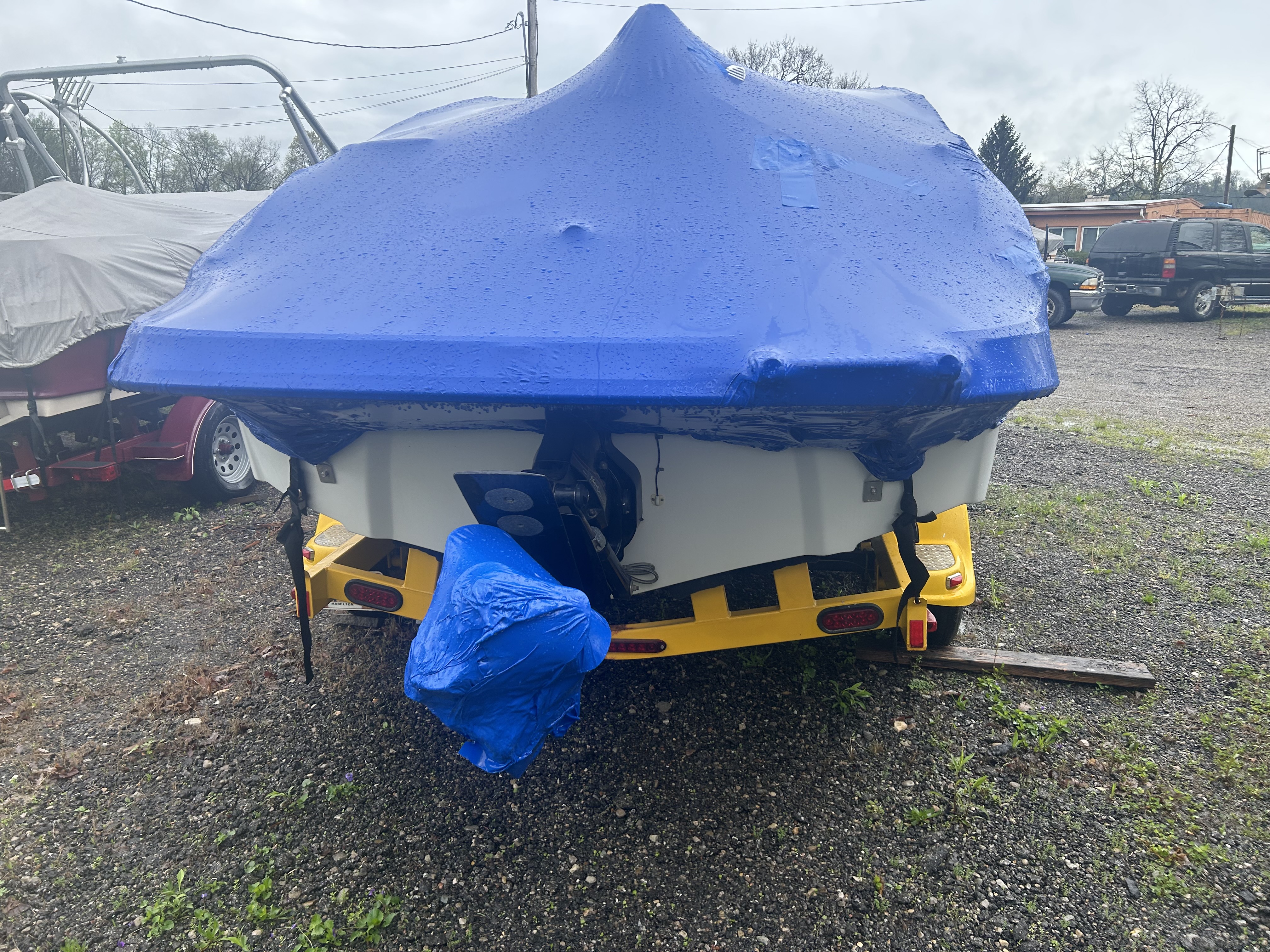 This boat also boasts many ammenities like 5 life preservers included, Aftermarket Radio with Blue-tooth, 5 gallon freshwater tank, 50 gallon fuel tank, a toilet & more.