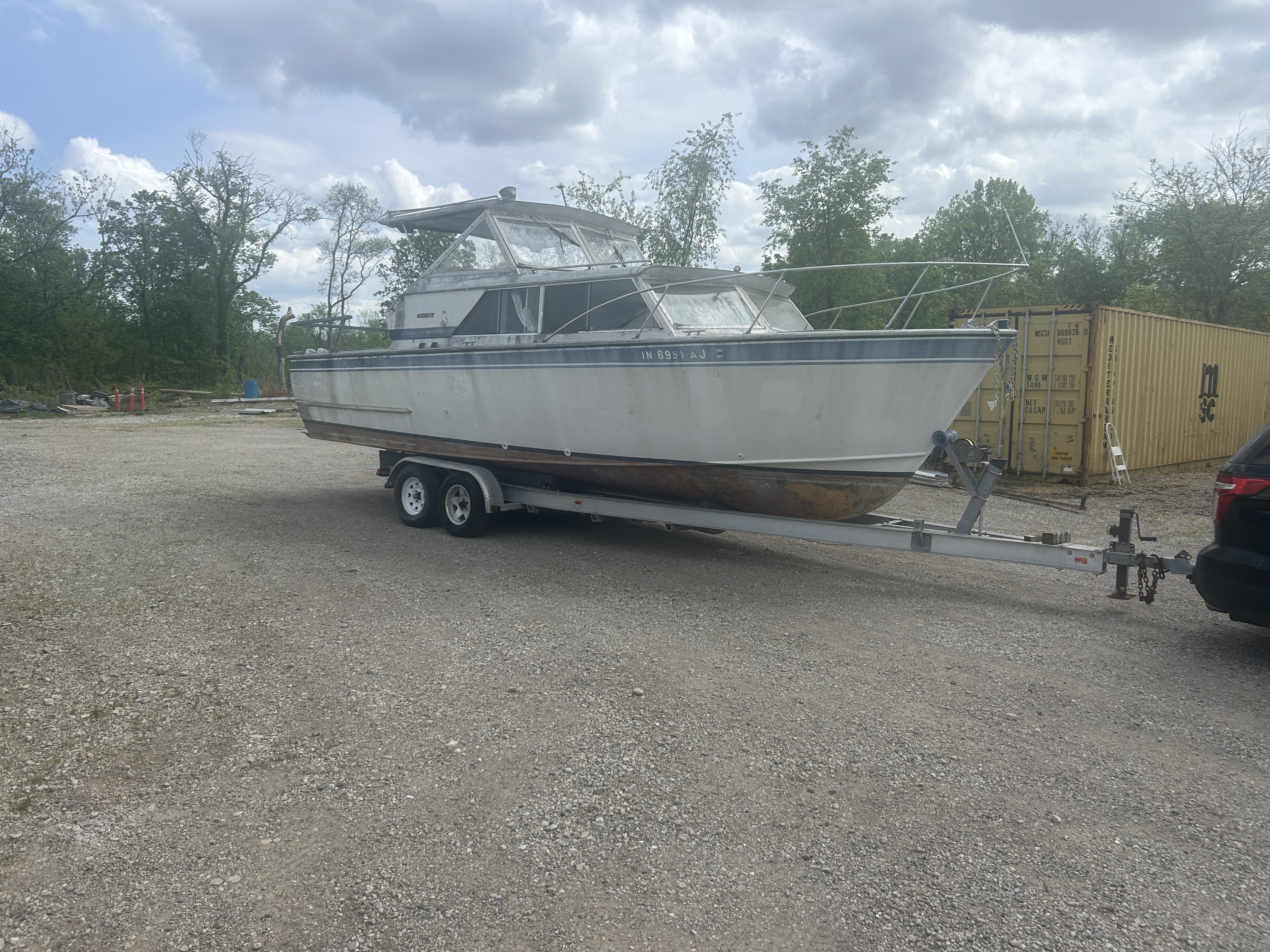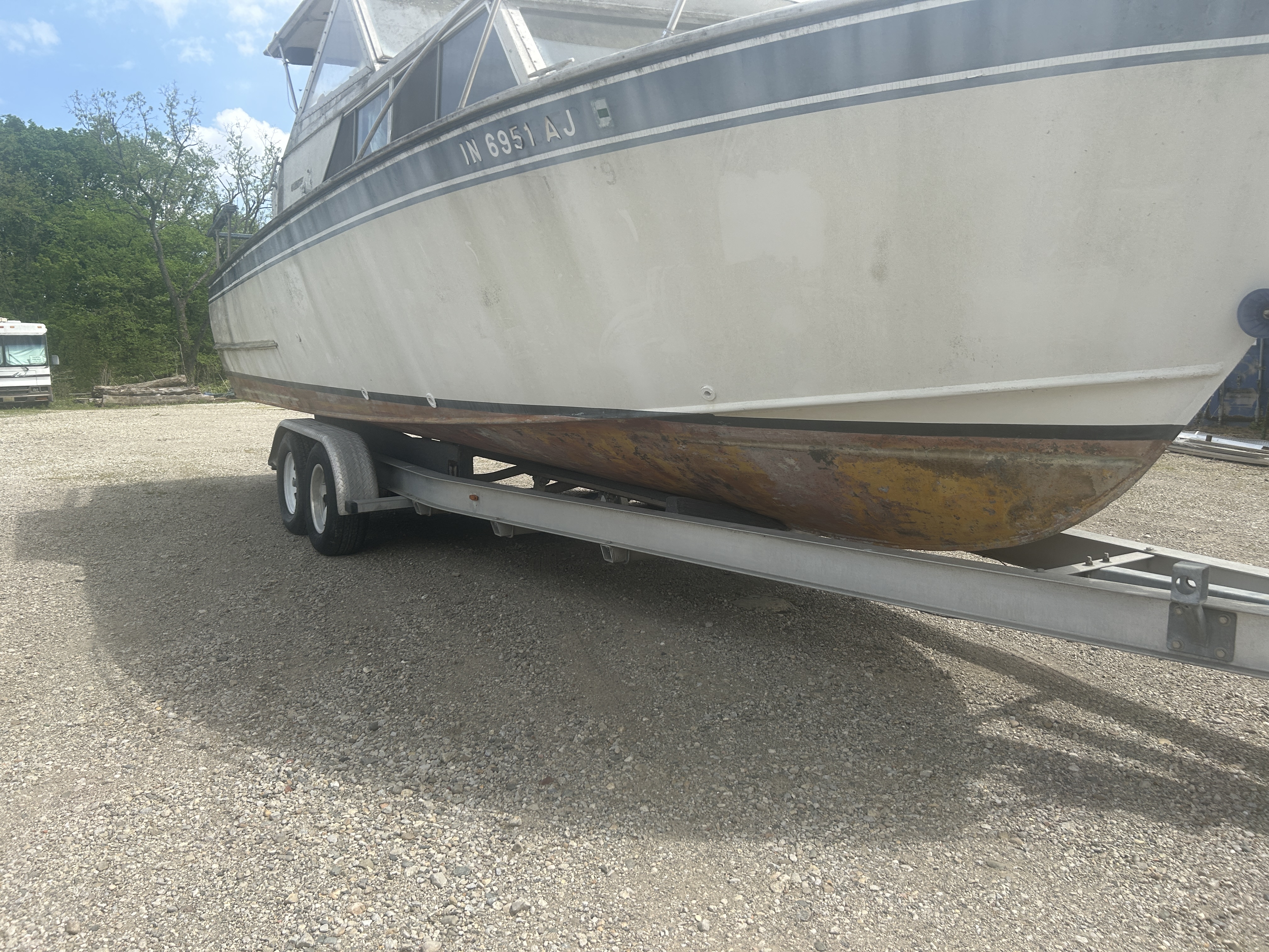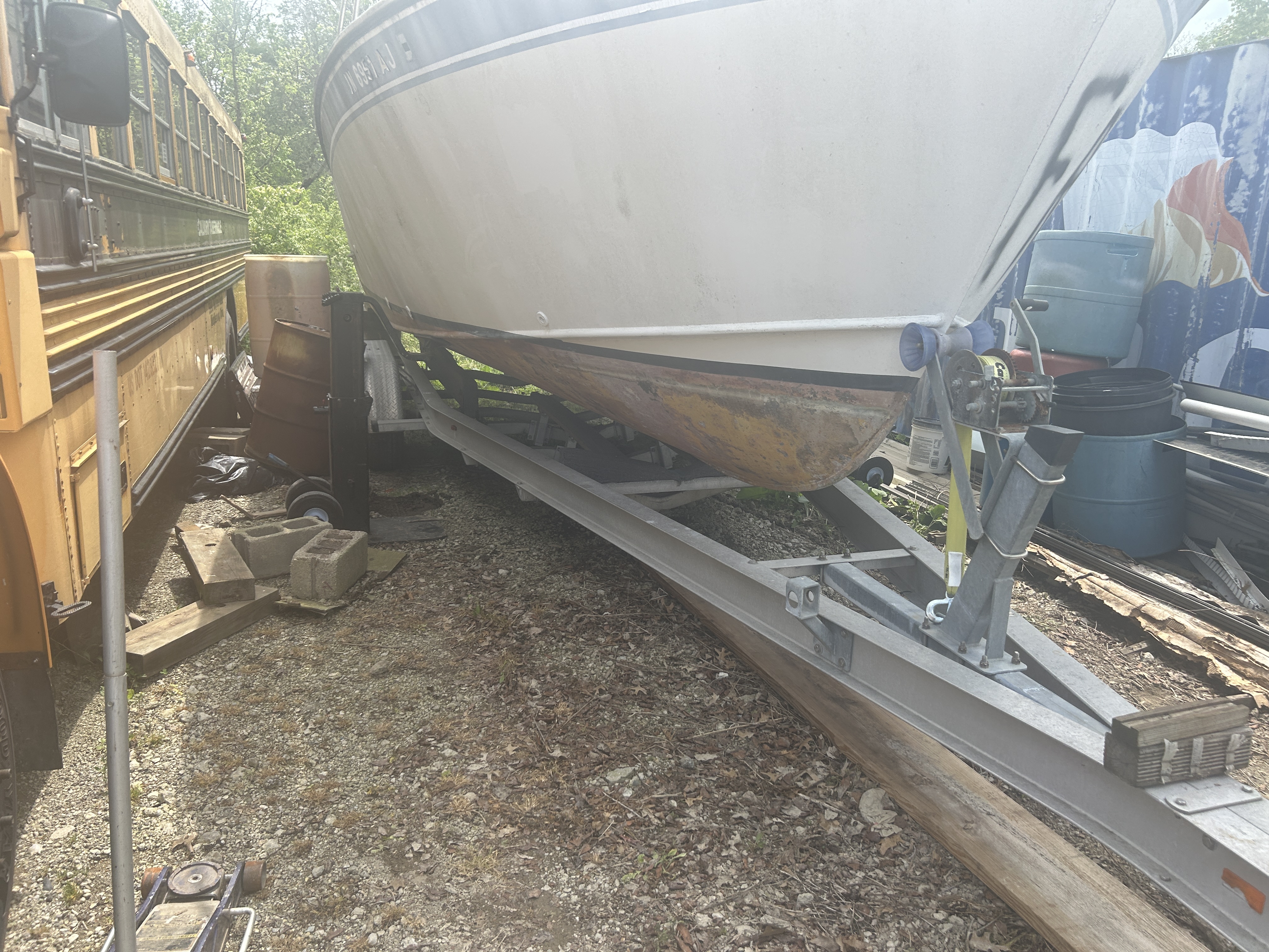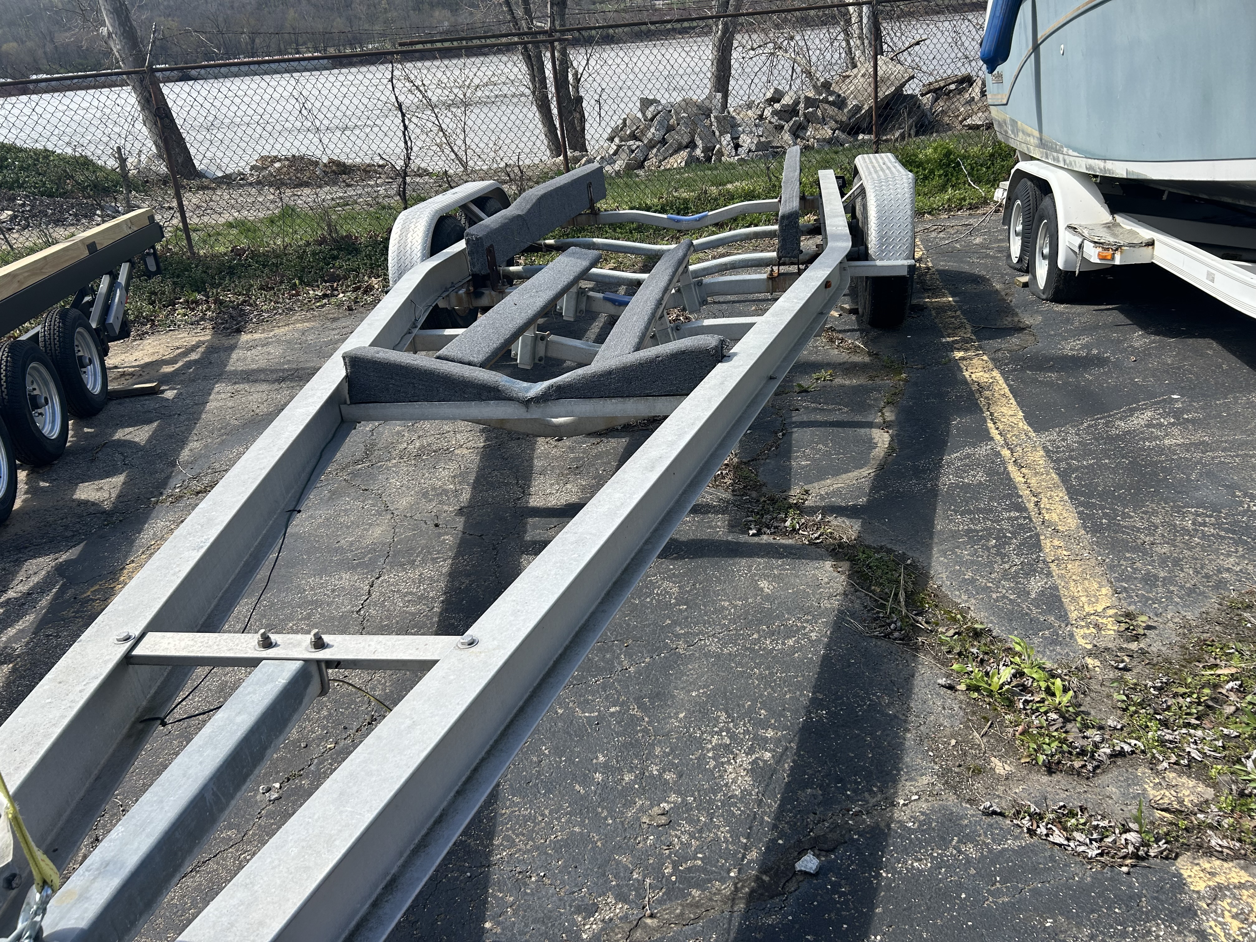 Currently there is a 28' Marinette Cruiser sitting on the trailer which will give an idea of what the loaded trailer would loook like. These photos are included here for refference.