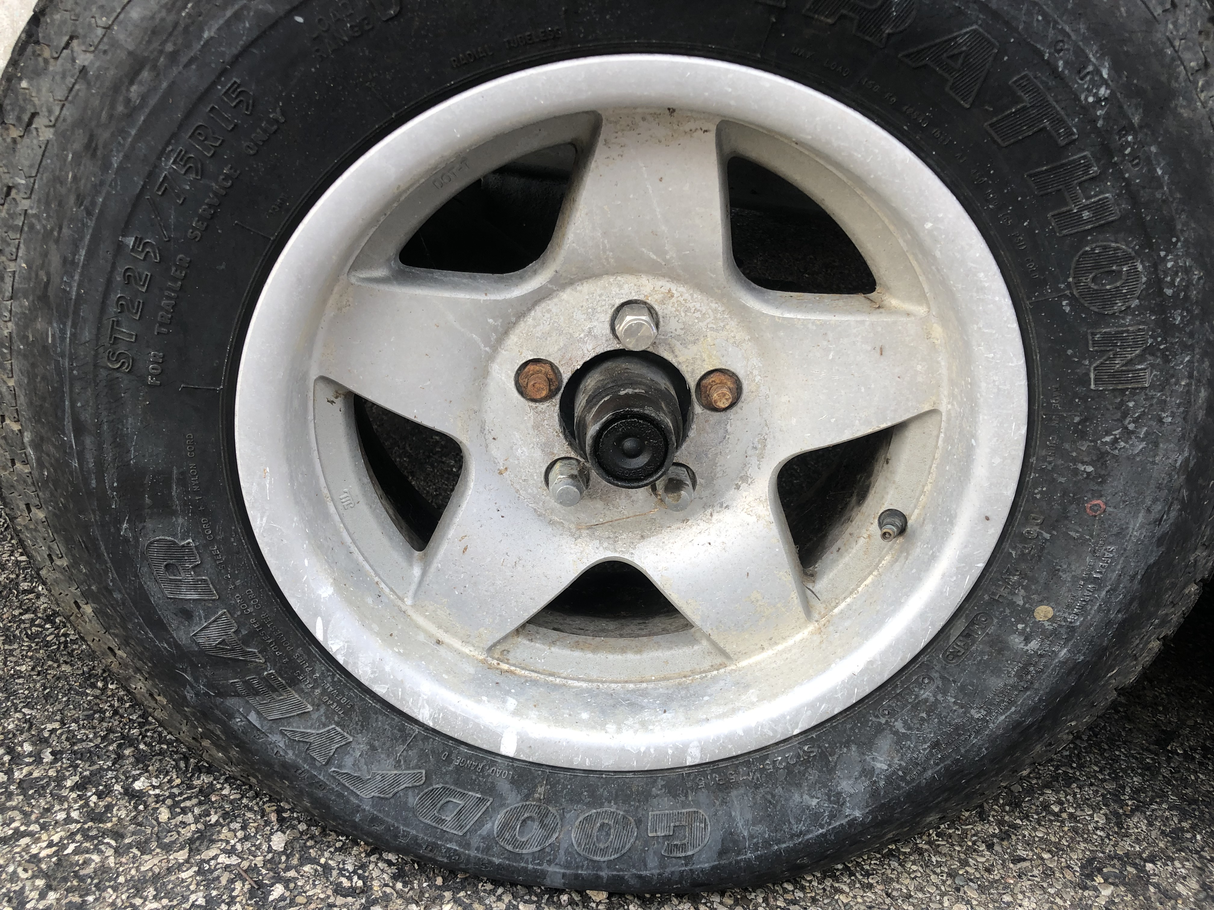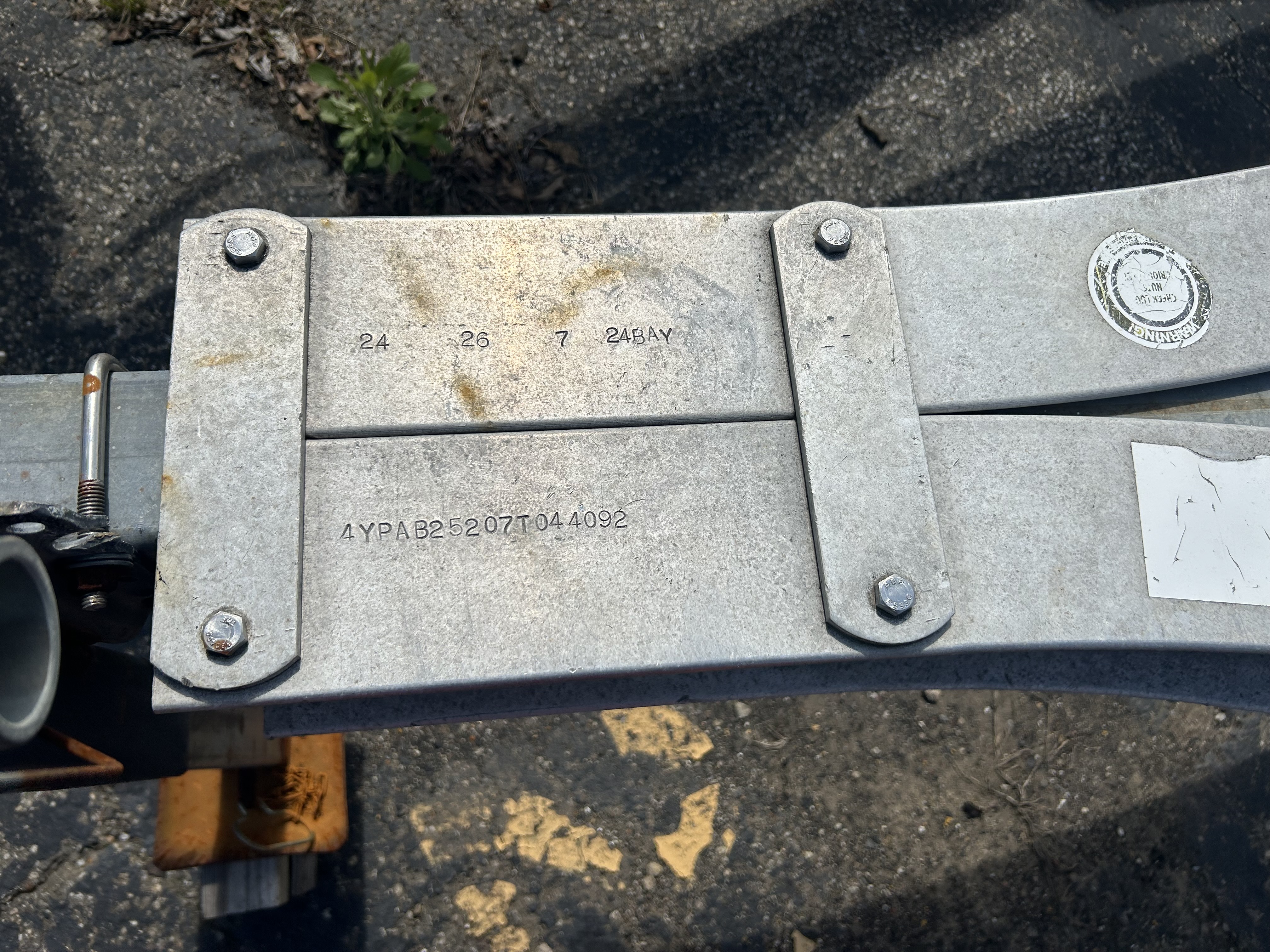 This Loadmaster Aluminum Boat Trailer was originally built in July of 2006 and was originally sold to and purchased by Yellowfin, located in Sarasota, Florida. It was originally built with an 80" frame, torsion axles with a 97" hub face, 10" disc brakes on both axles with electric over hydraulic brakes, 15" 5 lug aluminum wheel and tire assemblies, one spare wheel and mag tire assembly, stainless steel lug nuts, cypress bunks, stainless steel hardware, v-bunk, and front center boards.