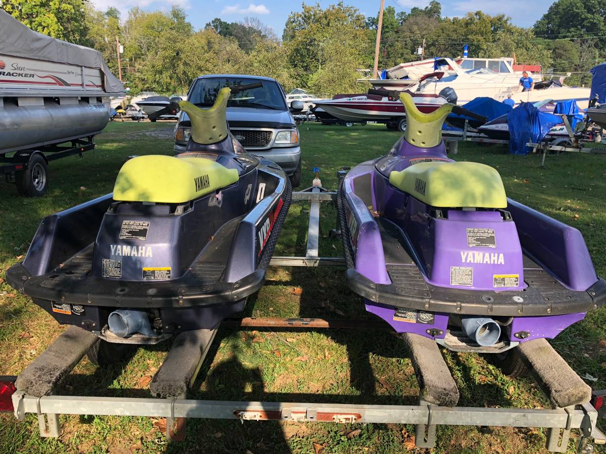 Looking for two dependable PWC's at a great price? Both these Yamaha pwcs have 650 Yamaha 2 stroke motors. They may not look like new ones, but they're dependable Yamahas. They start fine and run well and will provide plenty of fun. Both motors have good compression. One has the oil pump removed with block off plate installed. Both start right up, accelerate quickly and run well. The pair comes with a tandem galvanized trailer. The average retail on each of these is about $1250. So you're basically getting a galvanized tandem trailer for nothing.